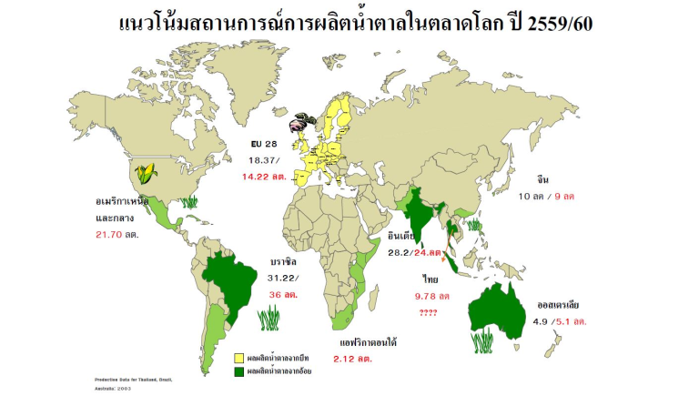 สถานการณ์การจำหน่ายน้ำตาลทราย ให้แก่ผู้ประกอบกิจการผลิตสินค้าเพื่อการส่งออกปี พ.ศ. 2559 บริษัทผู้ผลิตสินค้าฯ ได้รับสิทธิซื้อน้ำตาลทรายโควตา ค. จ้านวน 98 บริษัท ปริมาณน้ำตาลทรายที่ให้สิทธิ จ้านวน 3,651,037 กระสอบ (100 กก./กส.) เพิ่มขึ้นจากปี พ.ศ.2558 ร้อยละ 7.32 ณ 31 กรกฏาคม 2559 บริษัทผู้ผลิตสินค้าฯ