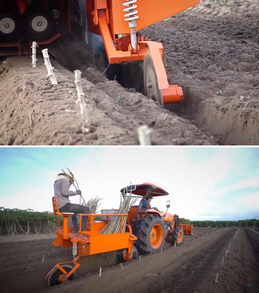 เมื่อถึงขั้นตอนการปลูกมันสำปะหลัง จากเดิมที่ใช้แรงงานคนปักท่อนพันธุ์ลงดิน ซึ่งต้อง