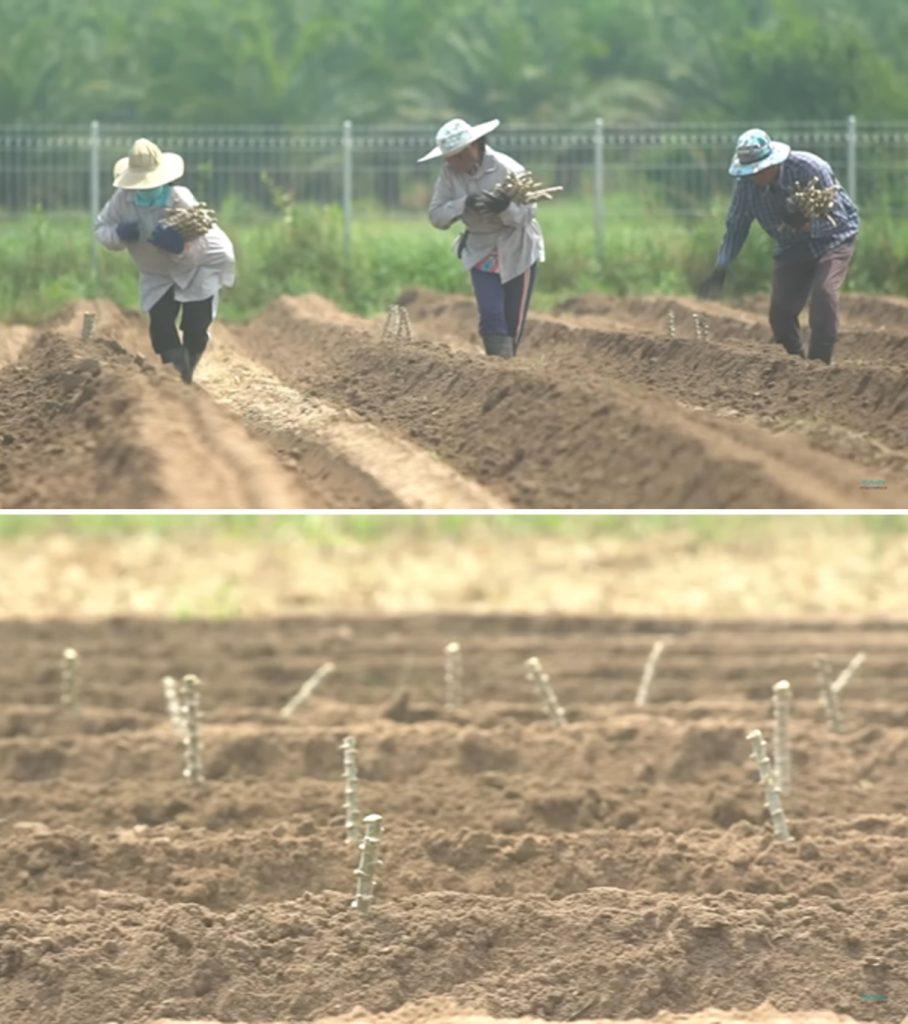ก็อาจทำให้ปักท่อนพันธุ์เอียง และลึกไม่สม่ำเสมอได้