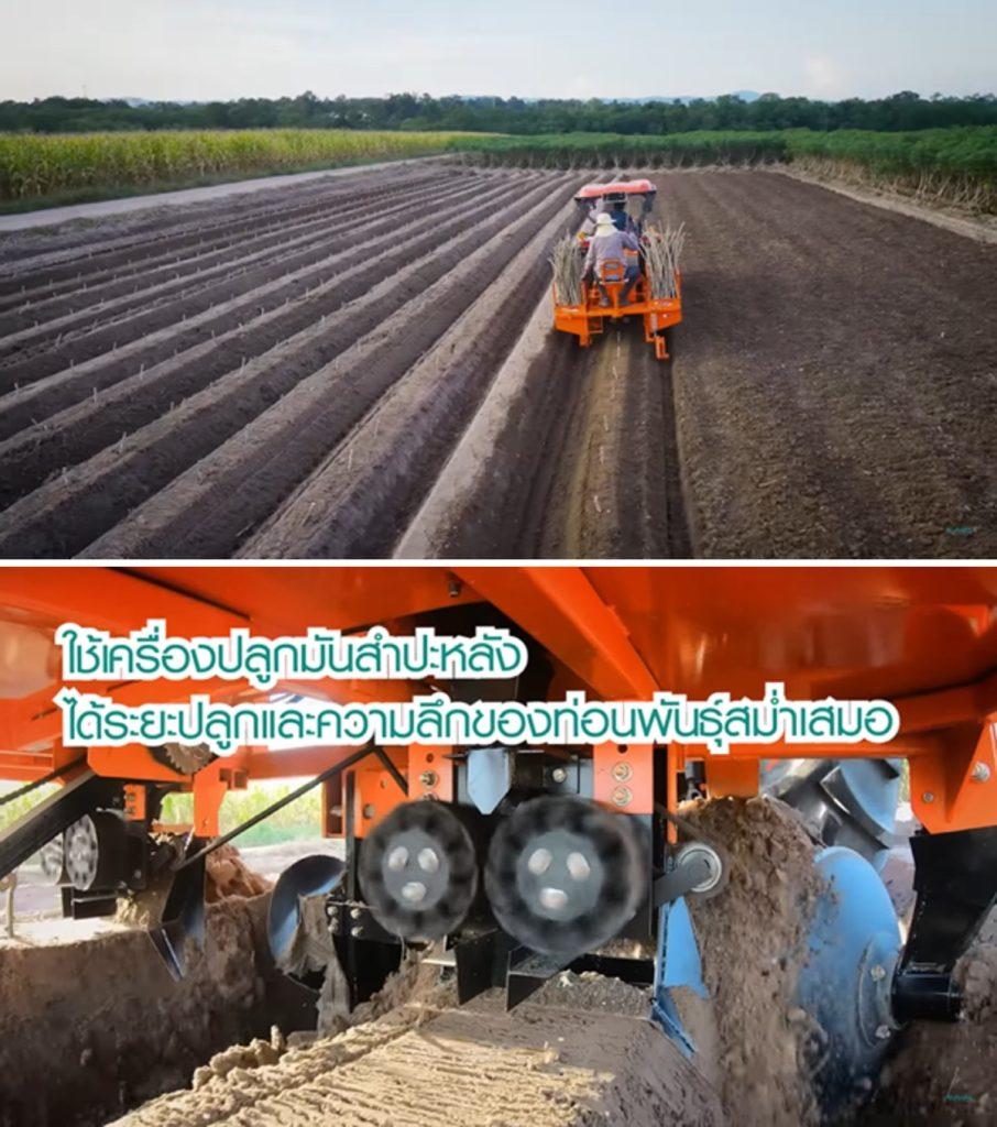 โดยหากเปลี่ยนมาใช้เครื่องปลูกมันสำปะหลัง ก็จะช่วยให้การปักท่อนพันธุ์ได้ระยะการปลูก รวมถึงได้ความลึกของท่อนพันธุ์ที่สม่ำเสมอมากขึ้น